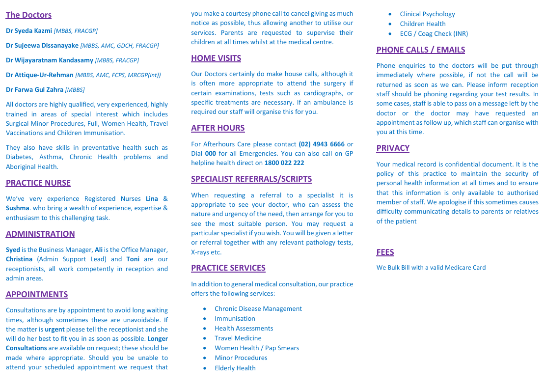 Please notify reception staff if you require interpreter services when you make an appointment.